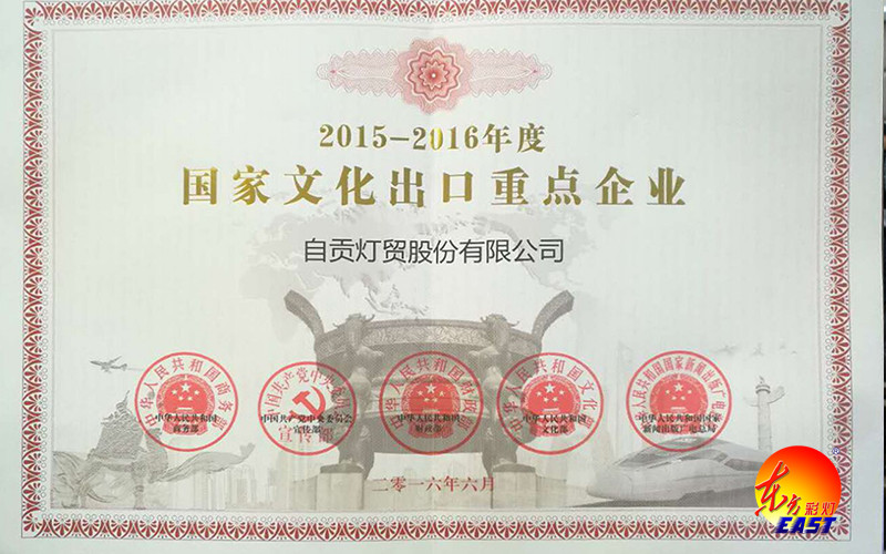 會上,省商務(wù)廳副廳長于濱向我公司董事長劉婭頒發(fā)《2015-2016年度國家文化出口重點企業(yè)》證書,這是我司自2007以來,第五次榮獲此殊榮,也是全國彩燈行業(yè)連續(xù)五屆十年獲此殊榮的企業(yè)。