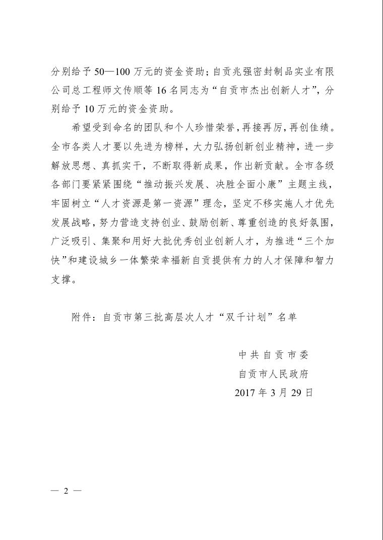 本次自貢市高層次人才“千人計(jì)劃-杰出創(chuàng)新人才”命名表彰會(huì)將于4月舉行。