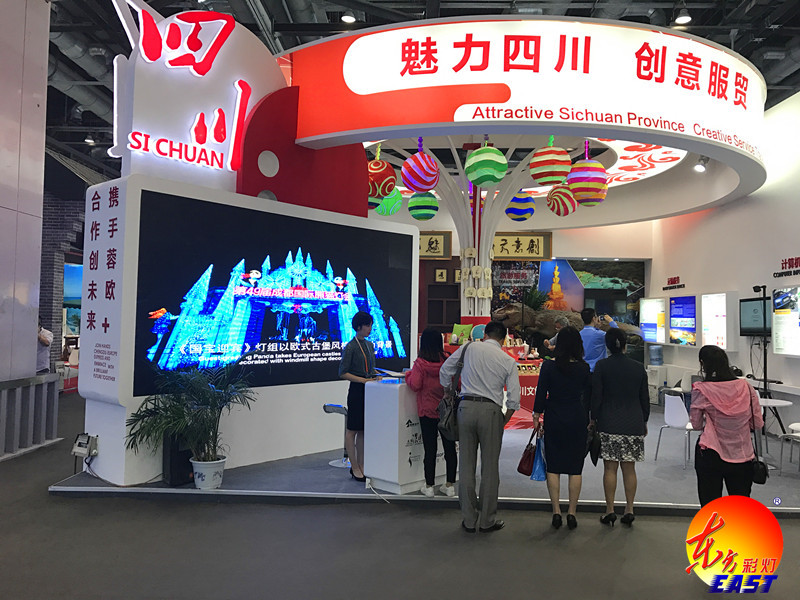 四川展區(qū)文化貿(mào)易“走出去”重點企業(yè)-自貢燈貿(mào)集團股份有限公司向客商展現(xiàn)了美國“休斯頓彩燈夢幻嘉年華”、“菲尼克斯東方彩燈——點亮世界”、“第49屆成都國際熊貓燈會”的大氣恢弘、美輪美奐。造型逼真,憨態(tài)可掬的燈會吉祥物“嘟嘟”更是成為展區(qū)亮點。