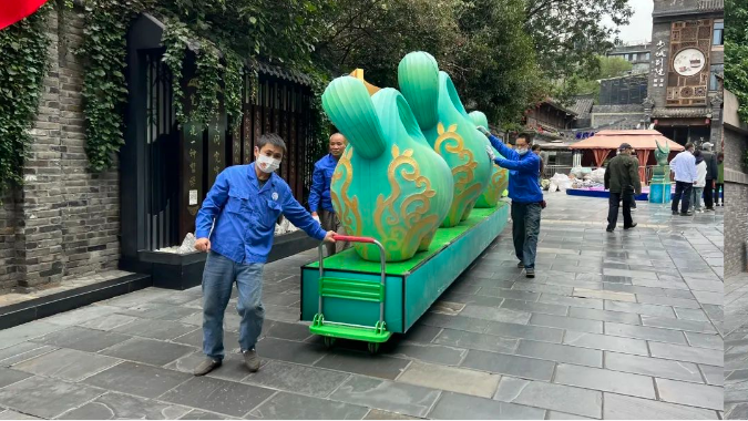 滿繪彩色圖案的金沙象牙燈組、文物造型設計燈組《嗚嚕?!罚堇[著傳統(tǒng)文化的“國潮”新風尚,彰顯著文創(chuàng)帶給這座城市的新鮮感和創(chuàng)造力。分布在寬窄巷子景區(qū)燈組,讓游客一腳踏入光影幻境中的古蜀王國。